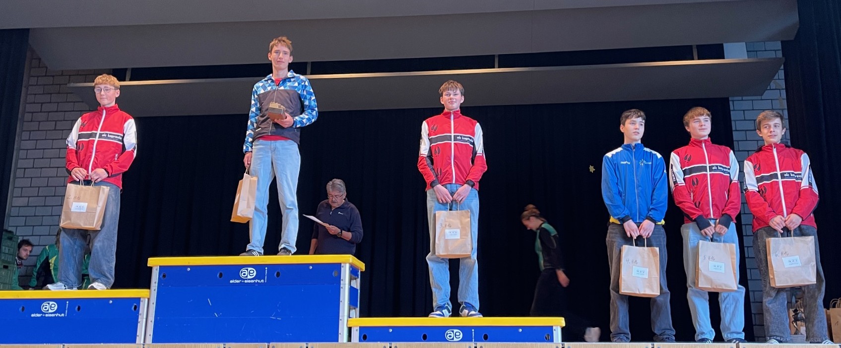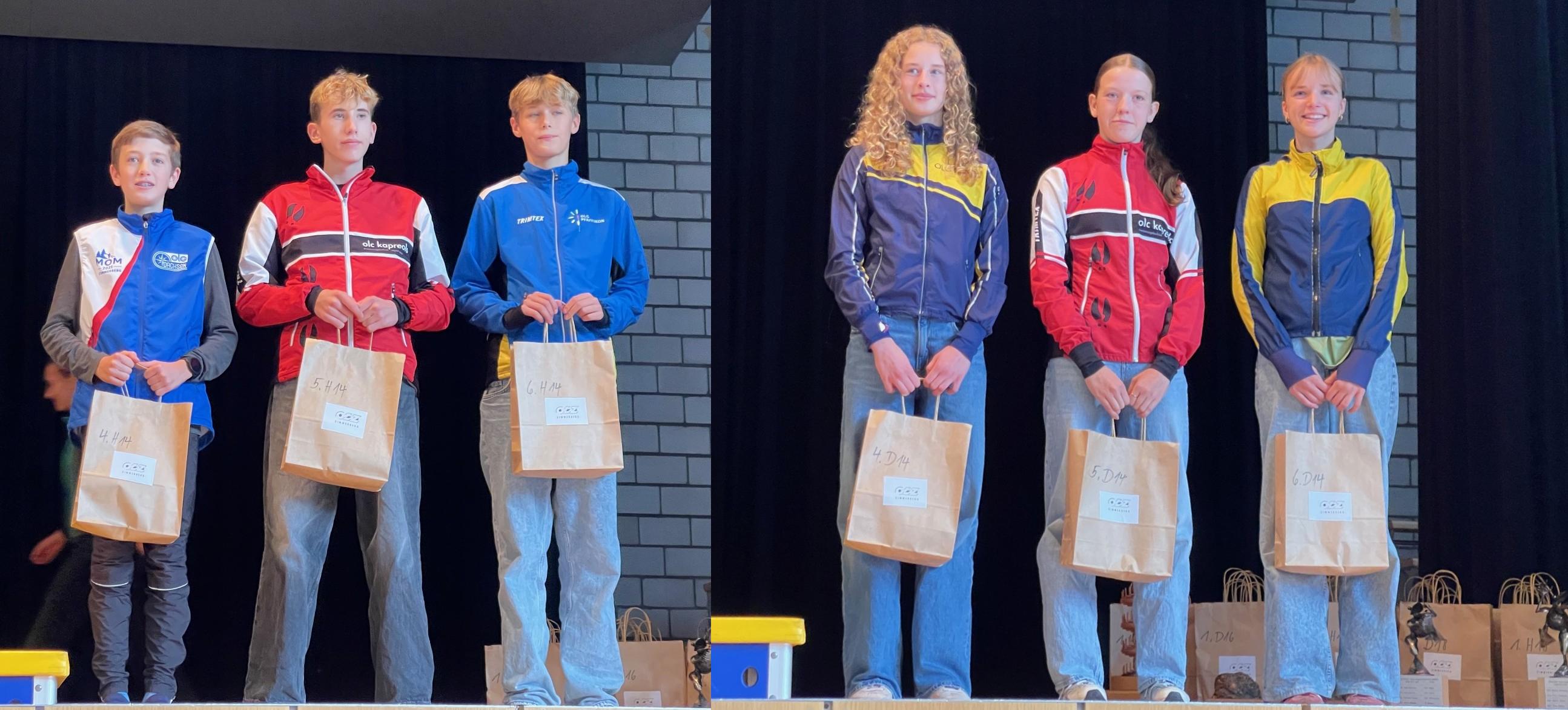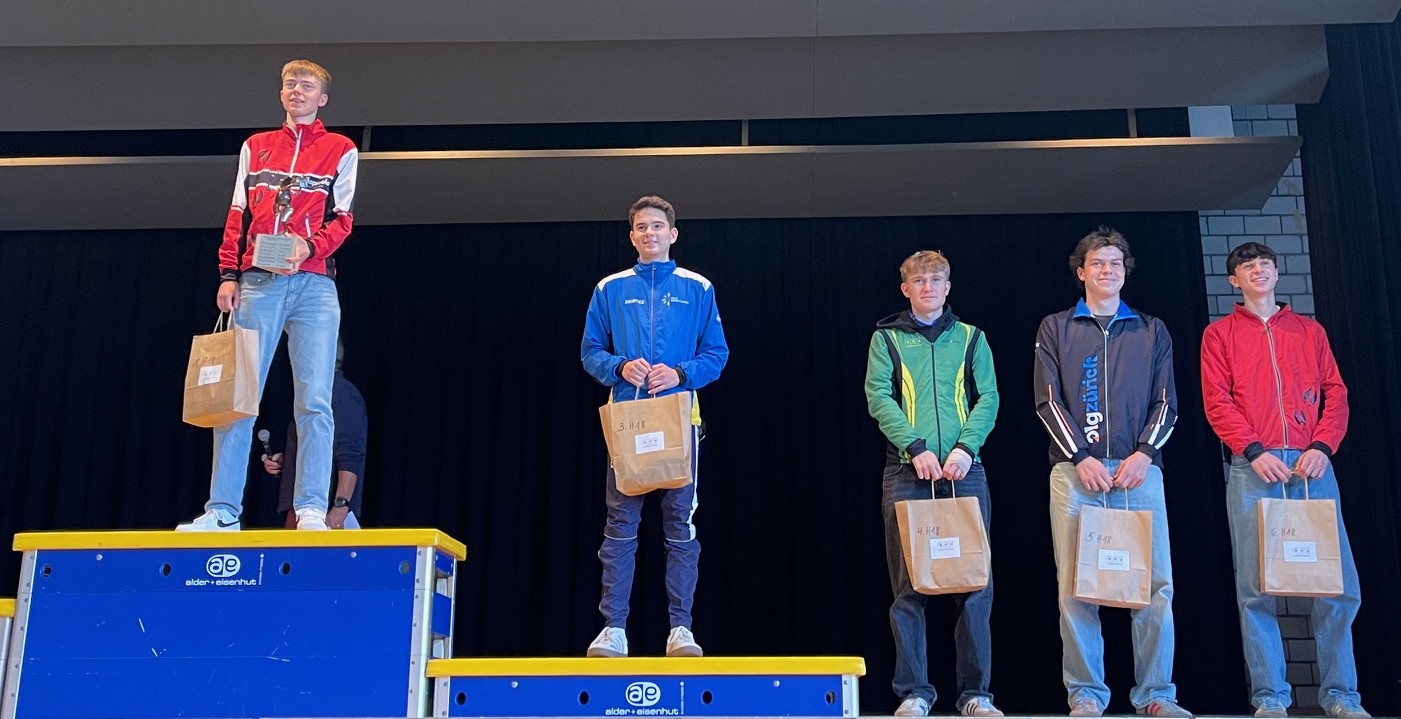 Viel Kapreolo-Rot an der Rangverkündigung der Herren H16: Loris (2.), Jorin (3.), Maurice (5.) und Florian (6.)